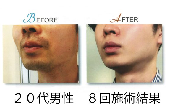 当店では光脱毛を使用しており、施術する度ヒゲがポロポロ抜け落ち、生えてくるペースが遅くなります。